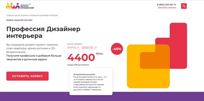 Рассрочка: купить курс дизайна интерьера можно от 1 699 руб. в месяц.