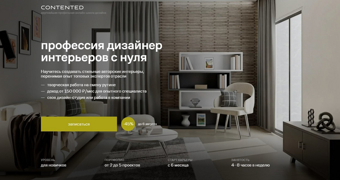 Contented — это современная онлайн-школа, предлагающая широкий спектр курсов в области цифрового и креативного дизайна. Их программа по интерьерному дизайну разработана для тех, кто хочет освоить профессию с нуля.