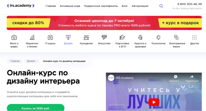 Сайт: Онлайн-курс по дизайну интерьеров для начинающих, обучение в школе ИРС (irs.academy)