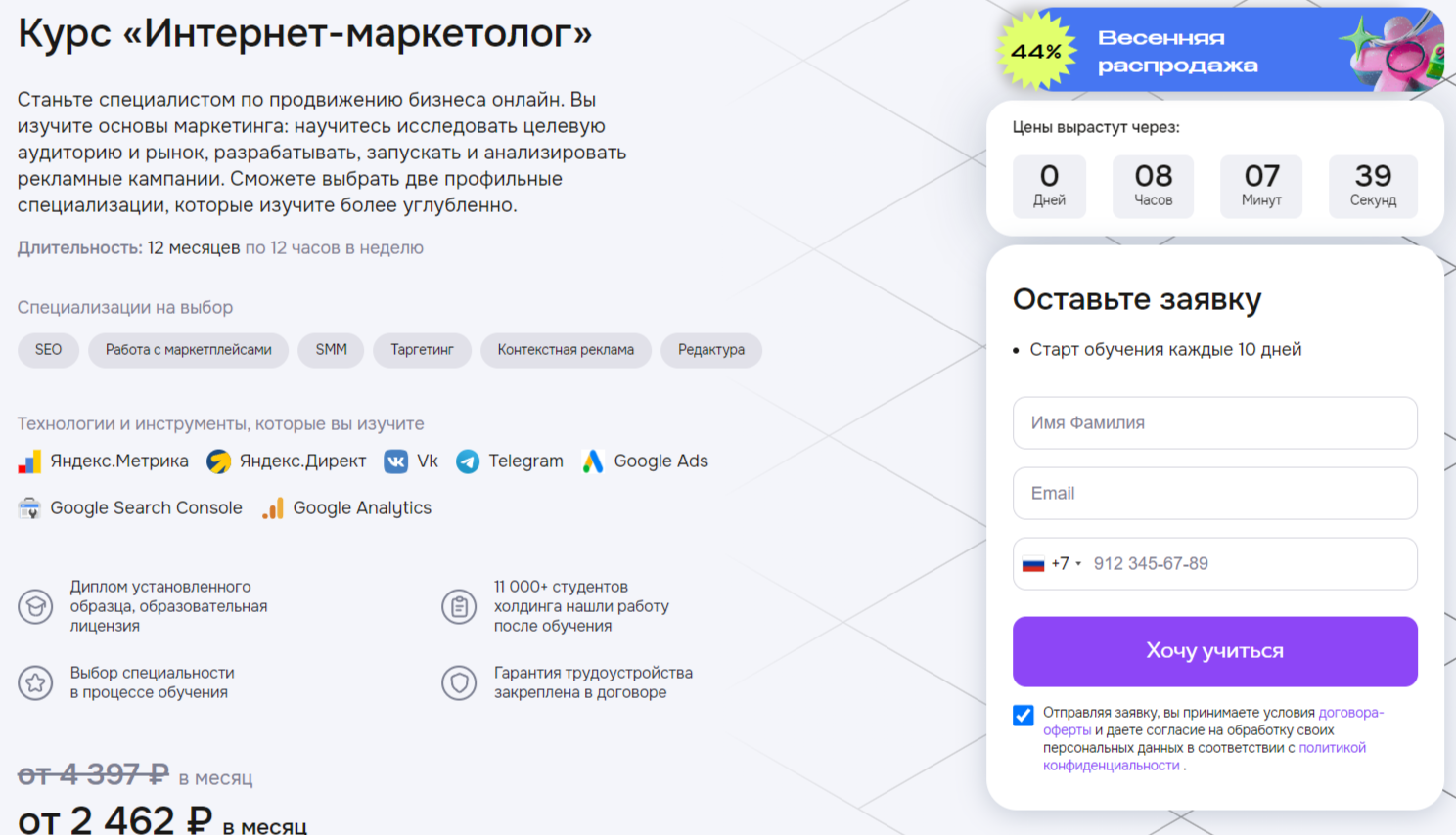 Интернет-маркетолог от GeekBrains — лучший курс с выбором специализации.