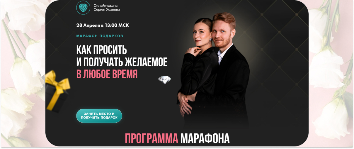 Марафон рассчитан на 5 дней, за время которых вы узнаете, как получать желаемое круглый год, как убрать претензии и обиды и многое другое. Также организаторы проводят марафон подарков!