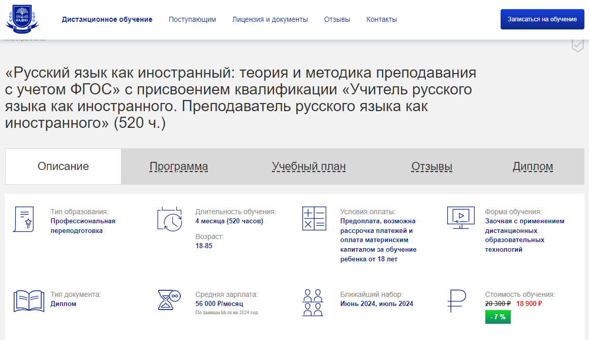 Русский язык как иностранный от НАДПО — лучшая профессиональная переподготовка.