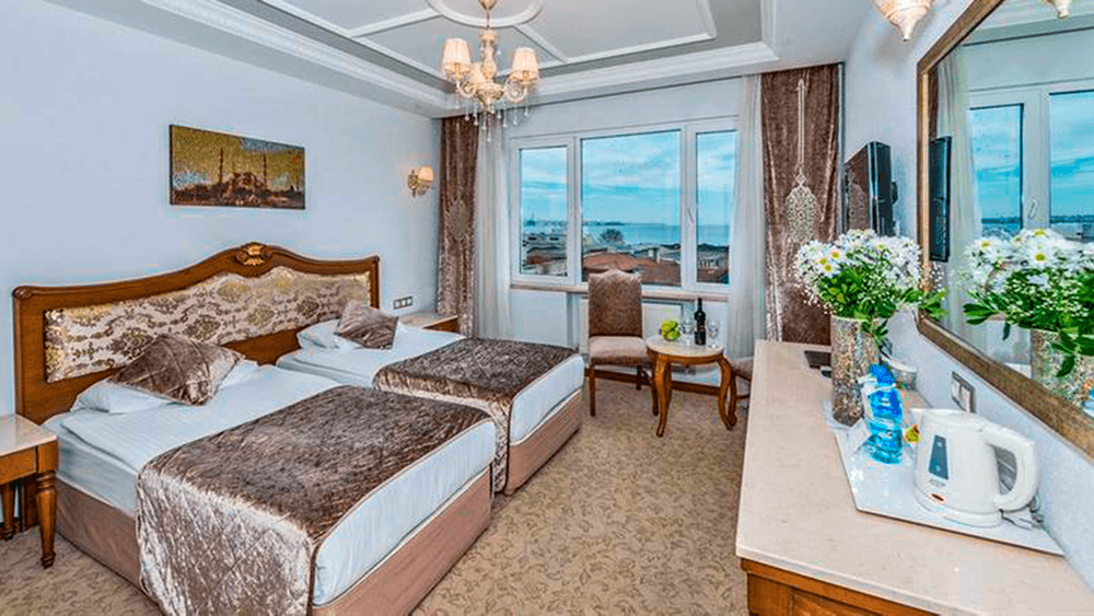 Отели в Стамбуле в центре удобны тем, что до всех главных достопримечательностей вы доберётесь пешком по прекрасным улицам древнего города. Недалеко от отеля находится Галатская башня, Девичья башня, Музей Айя-София. Есть номера для одного, двух и четырёх гостей и роскошный трёхместный номер с мраморным полом и отделкой позолотой. Можно отдыхать в общей гостиной, пока дети будут играть с аниматором — программы организуют каждый вечер. Также на территории работают бассейн, фитнес-зал и хаммам. В отеле есть Wi-Fi, пункт обмена валют и прокат авто.