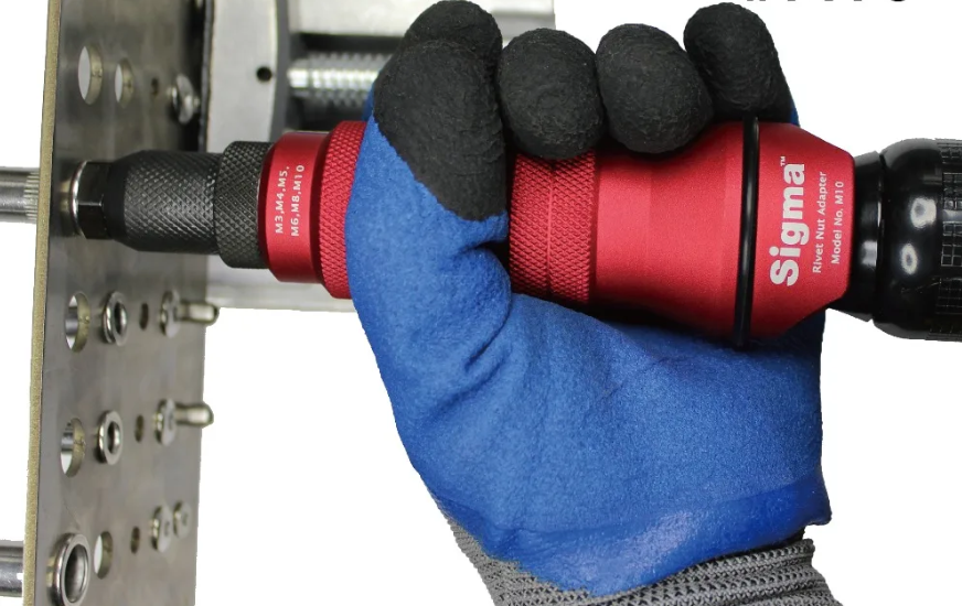 Эта насадка адаптирует любой сверлильный инструмент для установки алюминиевых резьбовых заклёпок.