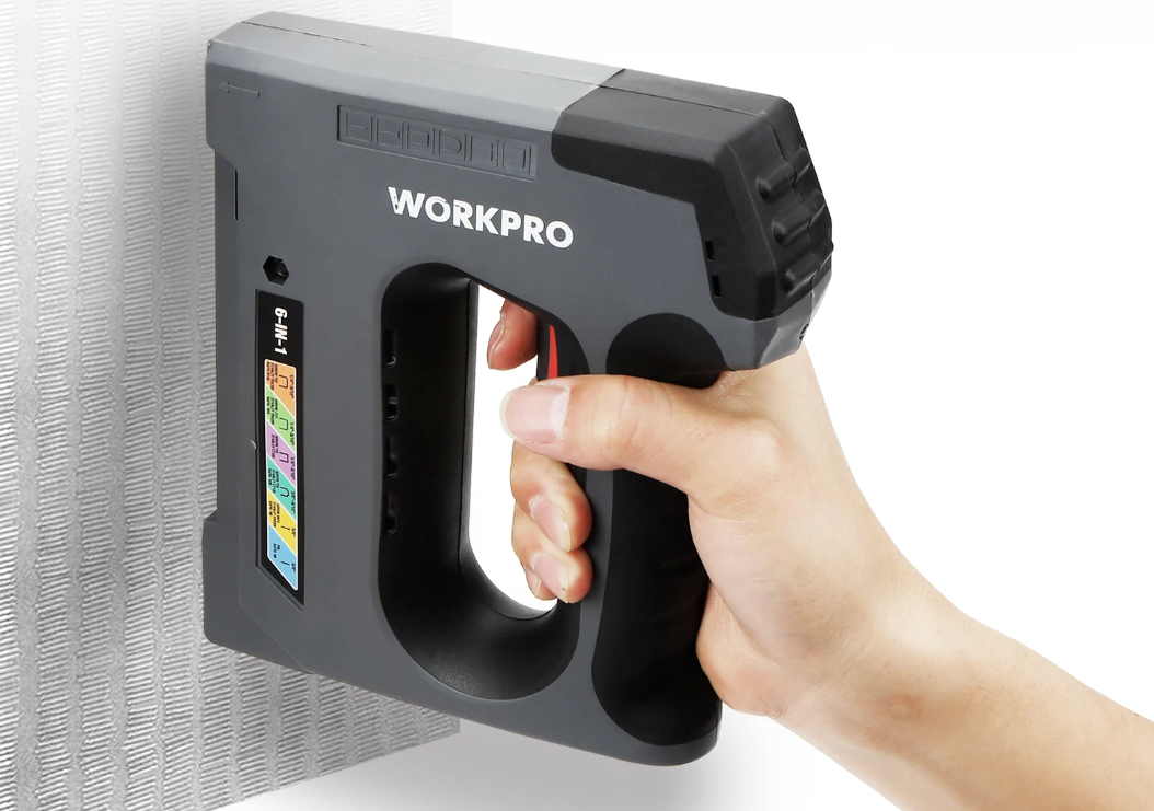 Электрический степлер предназначен для работы с древесиной и аналогичными материалами. Он выполнен из прочного пластика, что защищает его от повреждений и износа. Степлер может использоваться как с узкими скобами, так и с гвоздями.