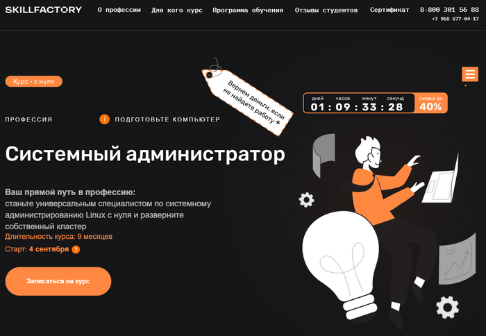 Системный администратор от Skillfactory — интенсивная программа обучения для подготовки к работе.