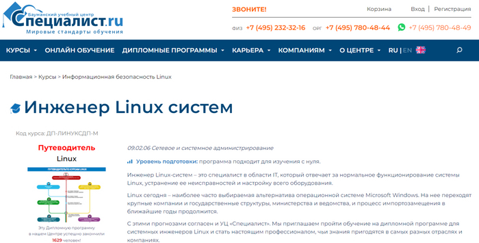 Инженер Linux систем от Учебный центр «Специалист» — лучшая комплексная программа обучения.
