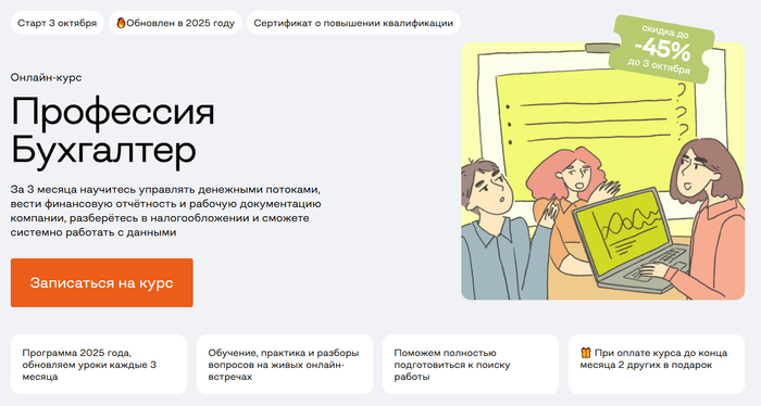 Профессия Бухгалтер от Бруноям — ускоренный курс с живыми онлайн-встречами.