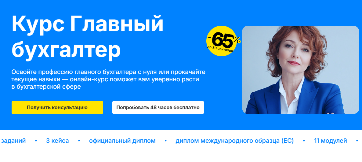 Курс Главный бухгалтер от SF Education — лучшая программа для карьерного роста. Промокод kursfinder дает скидку 15%.