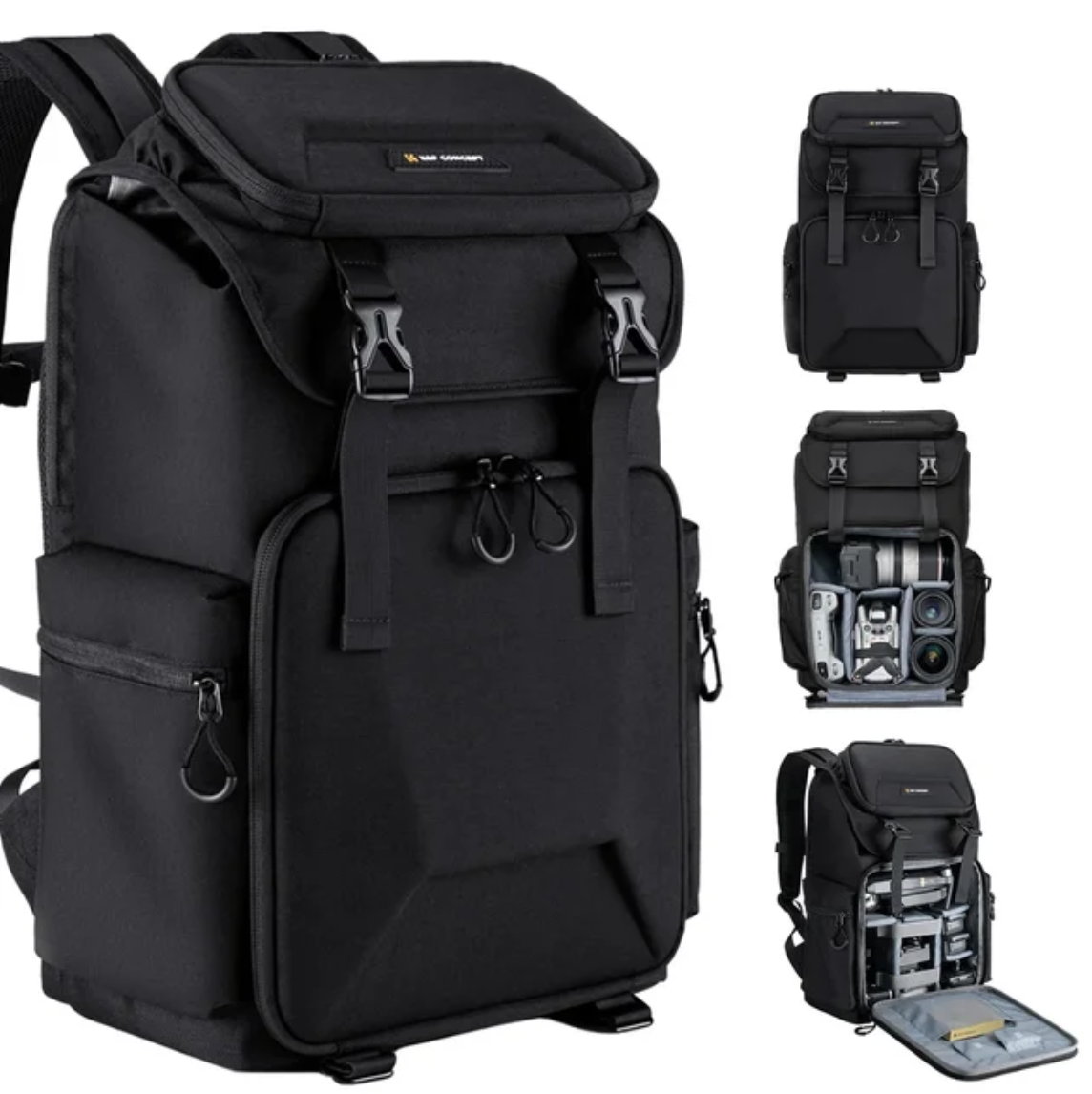 Рюкзак рассчитан на переноску фототехники, объективов, дрона и аксессуаров, сохраняя всё оборудование в безопасности. Основное отделение разделено мягкими перегородками, которые регулируются под любой комплект.