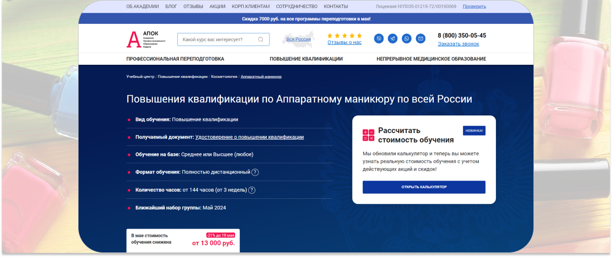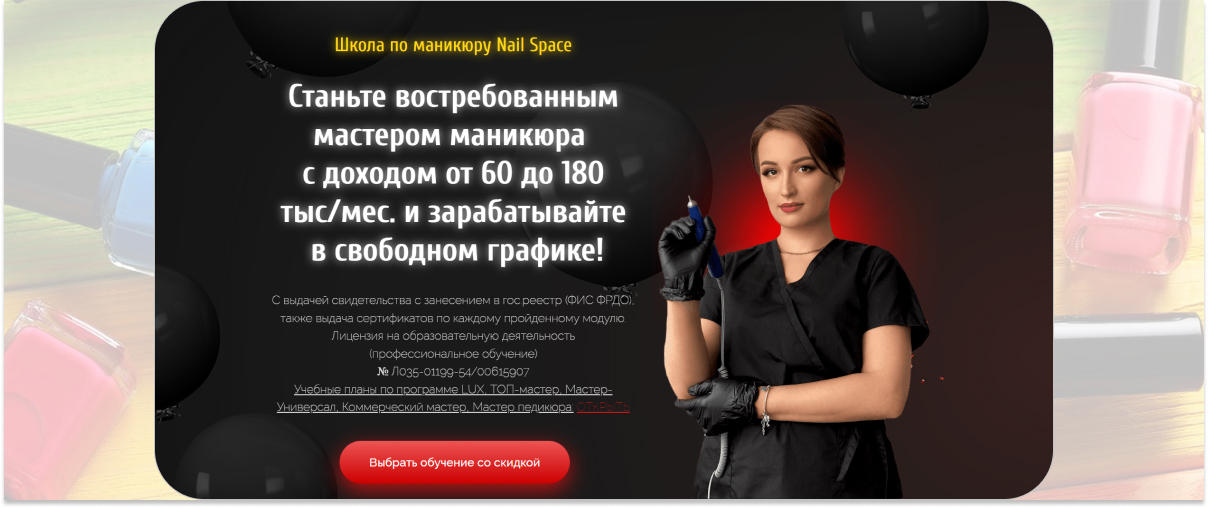 Реклама ООО «Учебный Центр профессионального обучения Е.Ми», ИНН 6164134580; АО Эдутех Групп, ИНН 7838094112; ИП ЛИТВИНОВА М.А., ИНН 772487849366; НО ДПО Национальный исследовательский институт дополнительного образования и профессионального обучения, ИНН 7724318601; ИП Глушков Семен Андреевич, ИНН 541003174020; ЧОУ ДО «ЕШКО», ИНН 3123015637; ООО «АПОК», ИНН 7203521298; ИП ЧАЧИНА И.Г., ИНН 774361298675; ИП Макаров Иван Викторович, ИНН 170108605337; ООО «НАЦИОНАЛЬНЫЙ ЦЕНТРАЛЬНЫЙ ИНСТИТУТ РАЗВИТИЯ ДОПОЛНИТЕЛЬНОГО ОБРАЗОВАНИЯ», ИНН 7726462390; Самозанятый гражданин Рафикова Мария Юрьевна, ИНН 72070072920; ИП Щигорцова Екатерина Константиновна, ИНН 760708573944; ЧОУ ДПО Центр Дизайна Ногтей И Маникюра "Advance Nails", ИНН 7814318606; ИП Уварова М.А, ИНН 772704799524; ЧПОУ "АКАДЕМИЯ "МАЙ", ИНН 7806049082; ООО «Курсы красоты и сервиса», ИНН 7329036564; ИП Оселедько К.О., ИНН 232010443271, ИП Лукша Анастасия Егоровна, ИНН 772965075702