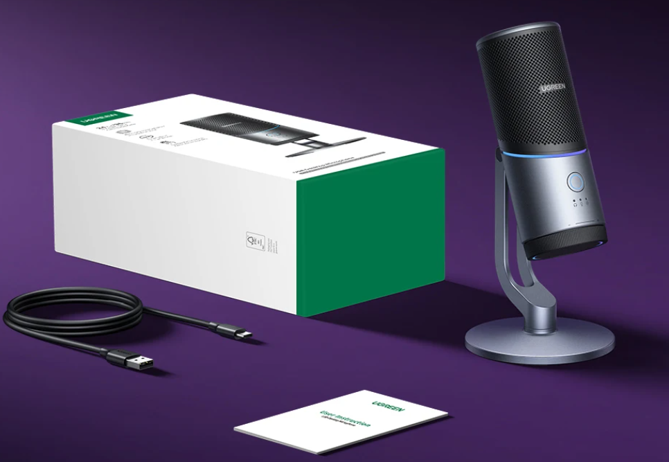UGREEN RGB USB Конденсаторный Микрофон предназначен для качественной записи голоса. Микрофон подходит для стриминга, подкастов, онлайн-игр и видеоконференций, обеспечивая чистый звук.