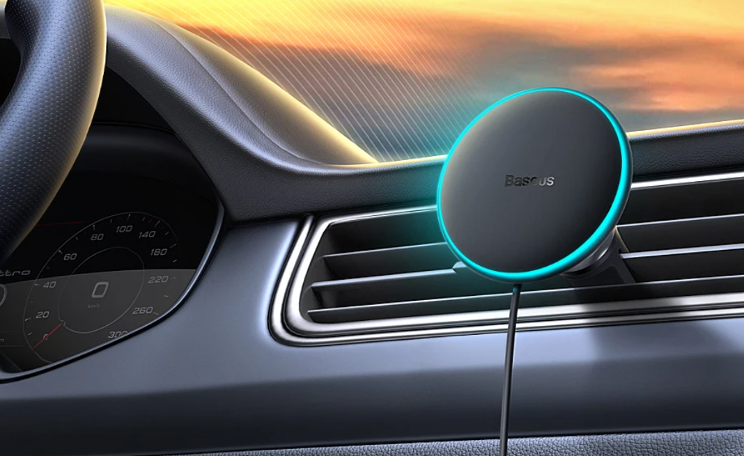 Магнитное беспроводное зарядное устройство Baseus для автомобиля обеспечивает удобную и быструю зарядку смартфона в дороге. Устройство надёжно крепится и позволяет использовать телефон в качестве навигатора.
