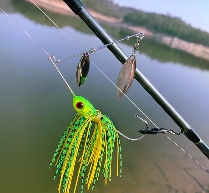 Яркая головка спиннербейта не только имитирует мелкую рыбу, но и служит визуальным раздражителем для рыбы, провоцируя её на агрессивную атаку.