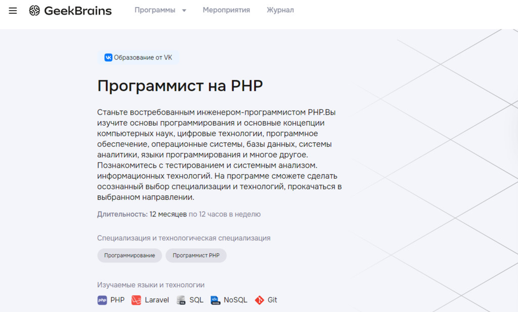 Программист на PHP от GeekBrains — лучший курс для начинающих разработчиков.