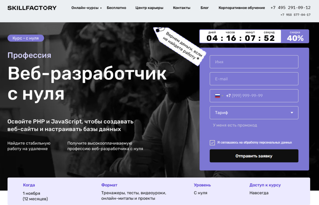 Профессия Веб-разработчик PHP от Skillfactory — комплексное изучение PHP и JavaScript.