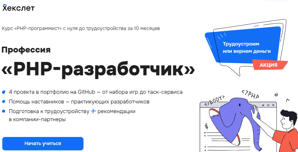 Профессия PHP-разработчик от Хекслет — для тех, кто хочет побольше практики, поменьше скучной теории.