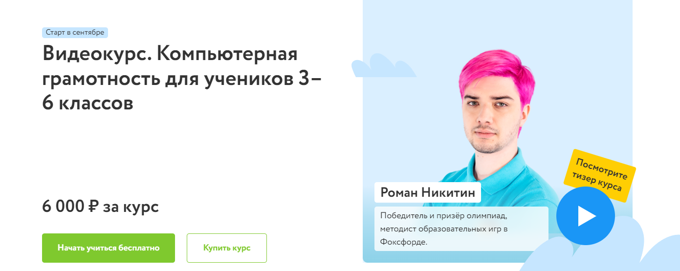 Компьютерная грамотность для учеников 3-6 классов от Фоксфорд — идеальный стартовый курс по компьютерной грамотности для младших школьников.