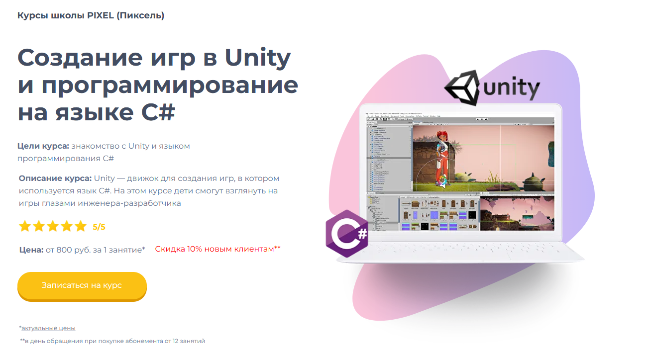 Создание игр в Unity и программирование на языке C# от Pixel — качественный учебный план, рассчитанный на подростков с 6 по 8 класс.