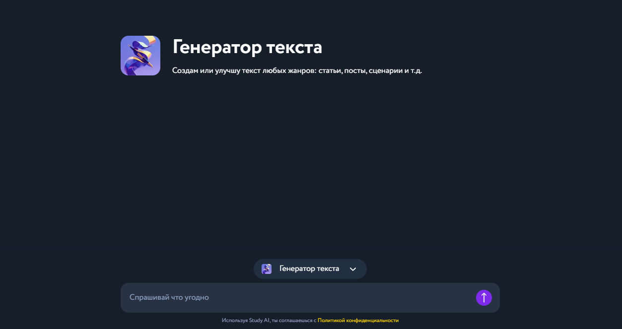 Study AI — многофункциональный ИИ-сервис, где можно быстро получить черновик эссе, доклада и других учебных проектов.
