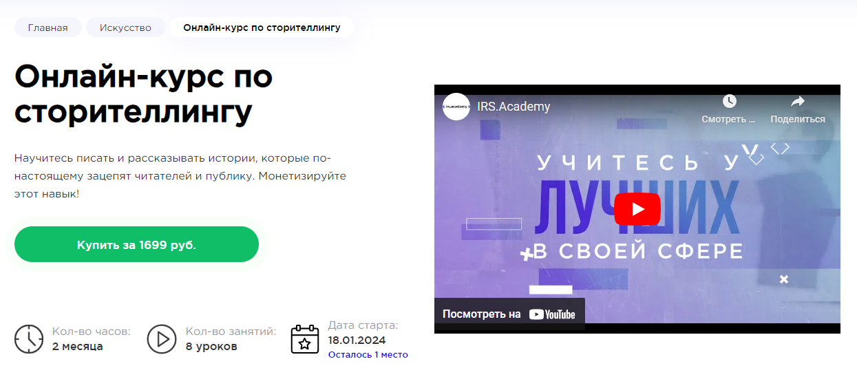 Онлайн-курс по сторителлингу от HEDU (irs.academy) — повествование как источник заработка.