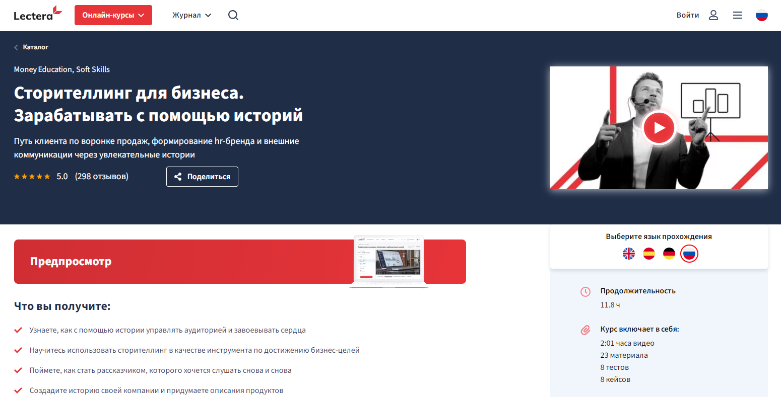 Сторителлинг для бизнеса от Lectera.com — содержательные уроки по использованию историй для достижений целей в бизнесе.