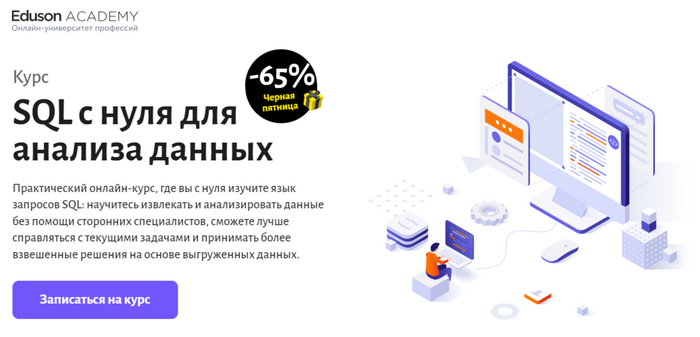 SQL с нуля для анализа данных от Eduson Academy — лучший курс по SQL для изучения с нуля.