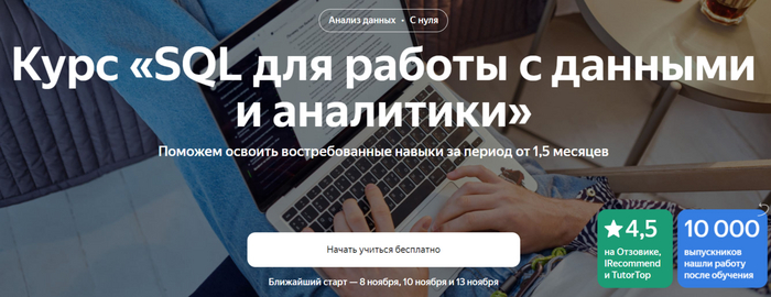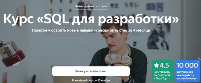 SQL для разработки от Яндекс Практикум — лучший курс по SQL для разработчиков.