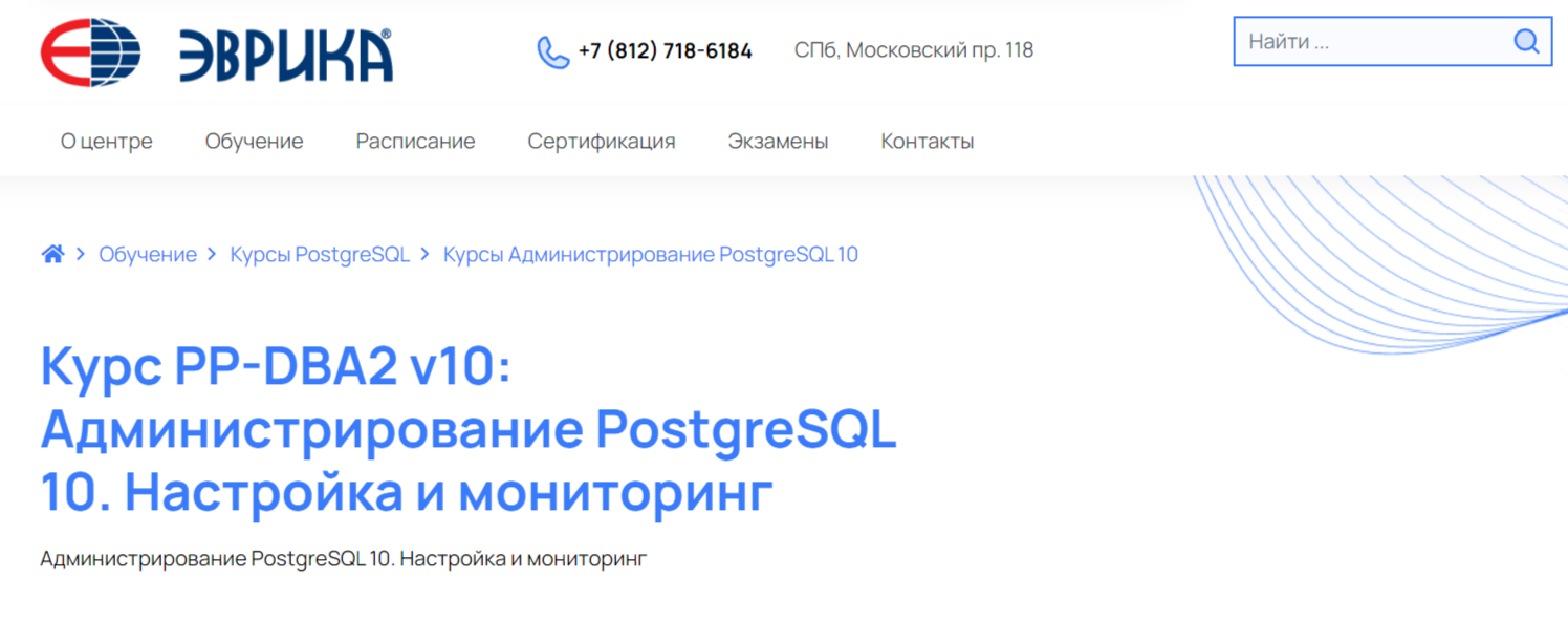 Курс PP-DBA2 v10: Администрирование PostgreSQL 10 от Эврика – лучший интенсивный курс по PostgreSQL.