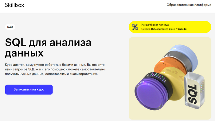 Курс SQL для анализа данных от Skillbox – лучший курс с уклоном на маркетинг.