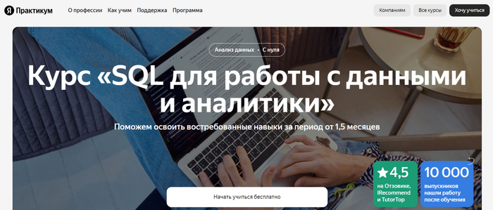 SQL для работы с данными и аналитики от Яндекс Практикум – лучший курс по PostgreSQL для аналитиков.