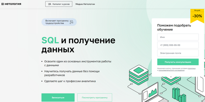 Курс SQL и получение данных от Нетология – лучший курс с полезными тренажерами.