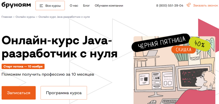Онлайн-курс Java-разработчик с нуля от Бруноям — самая актуальная программа, которая постоянно обновляется.
