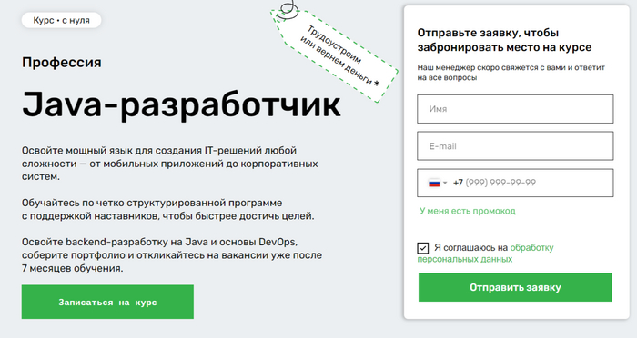 Факультет Java-разработки от Geekbrains — обещают, что работать начнете уже спустя 3 месяца после старта обучения.