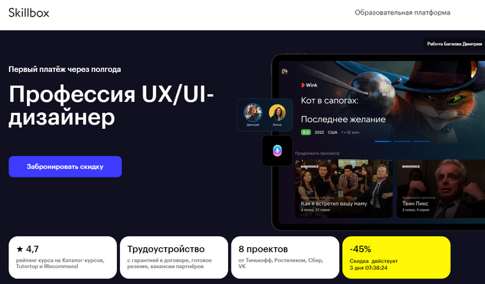 Профессия:UX/UI-дизайнер Plus от Bang Bang Education – большой курс обучения и 12 интересных проектов для портфолио.