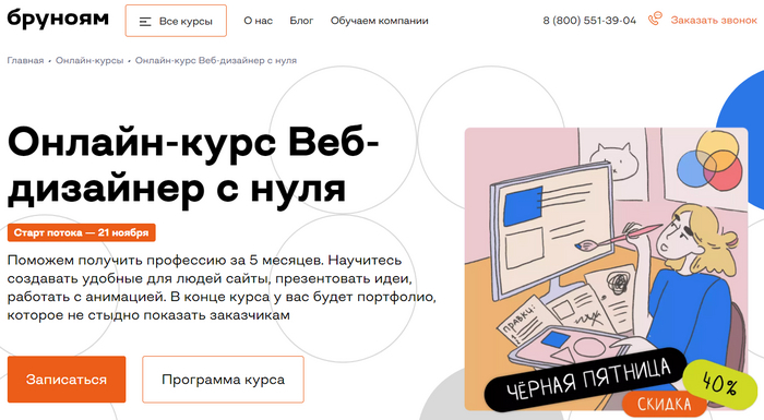 Онлайн курс Профессия Веб-дизайнер (UX/UI) от Бруноям — самое быстрое изучение базовых инструментов для создания веб-сайтов.