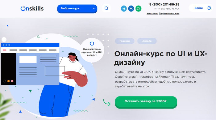 Онлайн-курс по UI и UX-дизайну от Onskills.ru — универсальный онлайн-курс по UI и UX-дизайну с получением сертификата, который подходит для самых разных категорий клиентов.