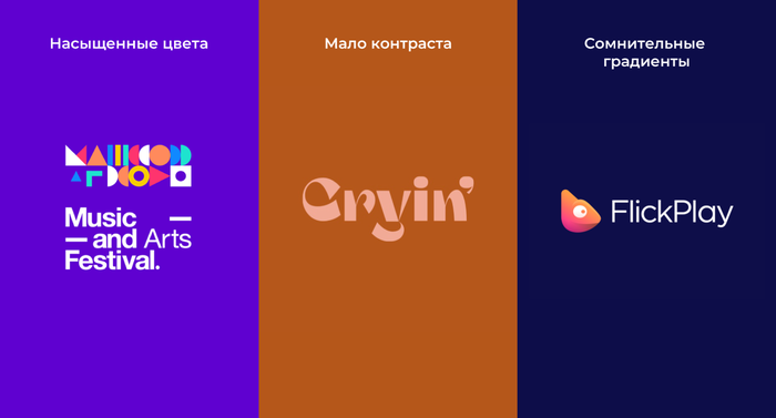 Иногда яркие или мало контрастные цвета играют на руку фирменному стилю, но даже в таких случаях правила не нарушаются, а используются приемы «на грани»: