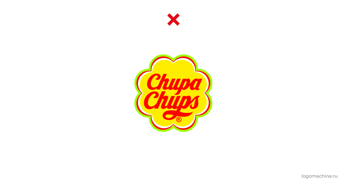 Вот несколько самых частых ошибок, связанных с подбором цветов в логотипе на примере Chupa Chups: