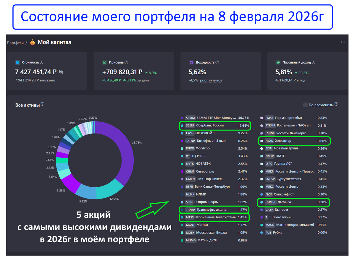 Я считаю эти 5 акций привлекательными для дивидендных портфелей в 2026г! Чтобы не быть голословным, покажу вам состав своего портфеля - все 5 бумаг в нём есть: