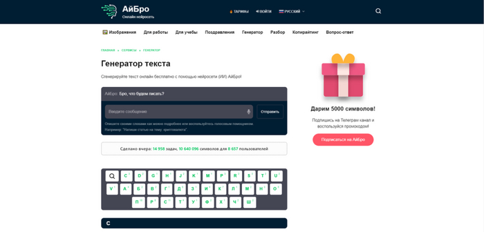 Мощный ИИ-инструмент: АйБро использует искусственный интеллект для быстрой и качественной генерации текстов по разным темам.
