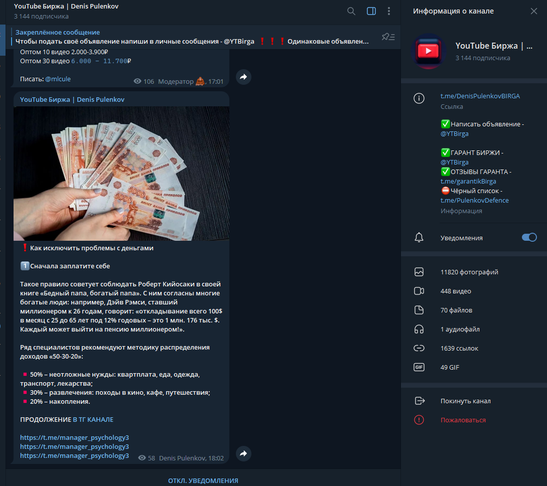 Топ-5 Ютуб биржи в телеграмме | YouTube Объявления