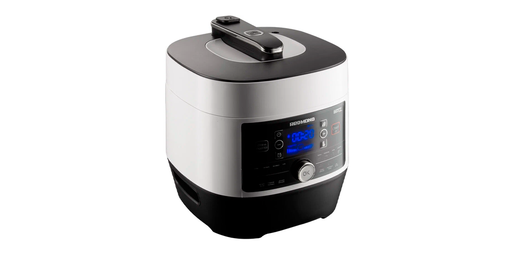 Продолжает рейтинг популярная мультиварка-скороварка в современном дизайне хай-тек REDMOND RMC-P350. Она наделена полностью съемной крышкой, 5-литровой чашей с надежным антипригарным покрытием DAIKIN и удобным управлением с поворотным джойстиком и информативным лед-дисплеем.