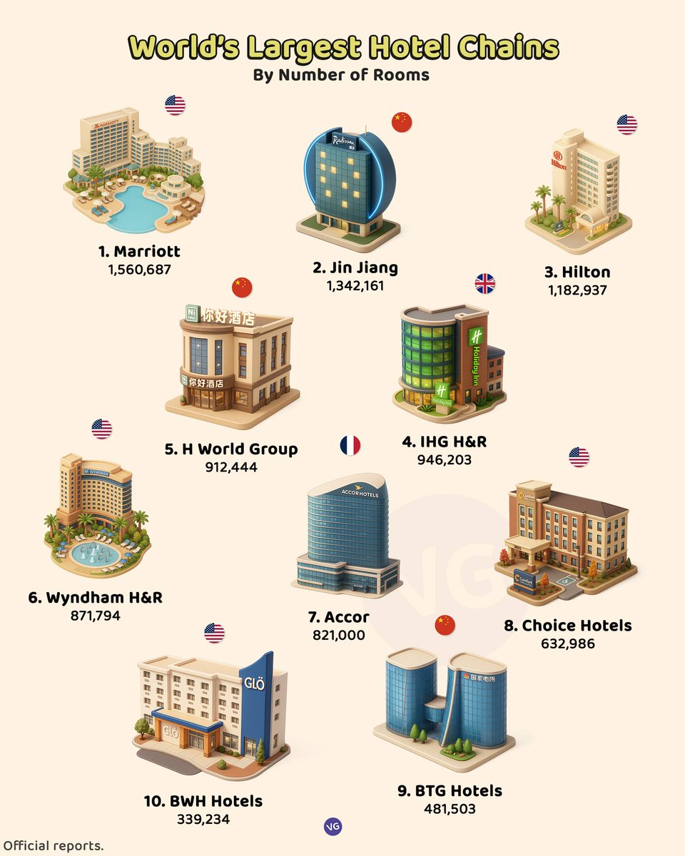 Топ 10 мировых гостиничных сетей по числу номеров