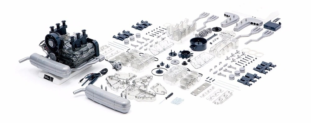 Набор для самостоятельной сборки (конструктор) прозрачного двс автомобиля. После сборки можно наблюдать вращение и движение всех деталей. Ссылка