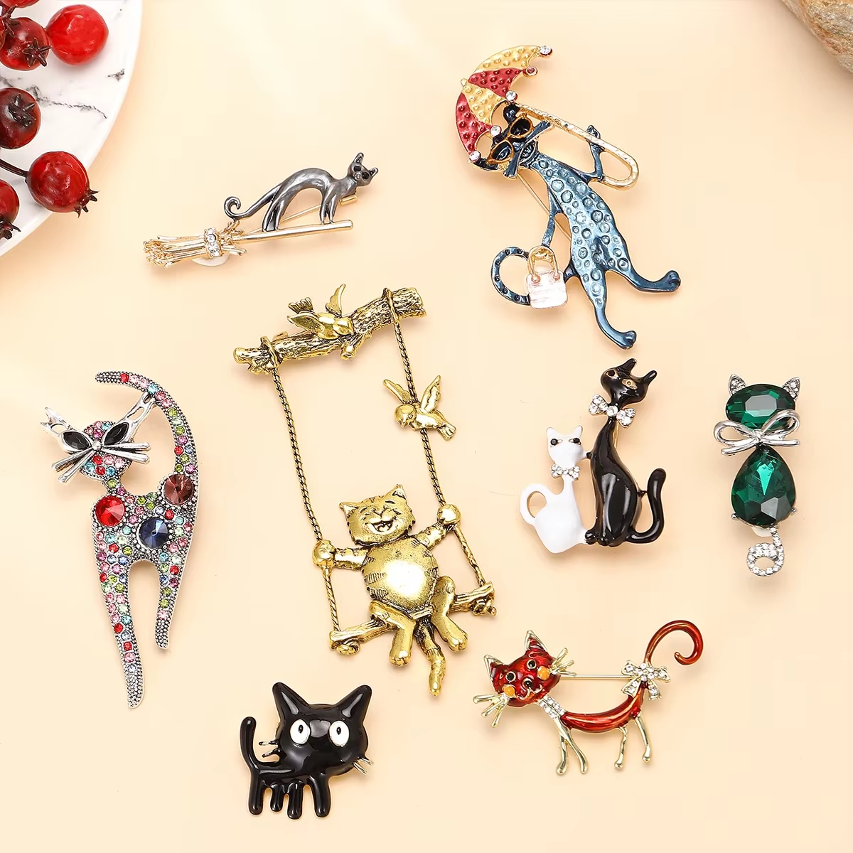 Эмалированные броши 'Beerus Cat' в виде котов-сфинксов с разноцветными глазами. Есть как золотого цвета, так и серебряного. Стоит брошка по акции ''Комбо!" 264 руб. Ссылка на неё.
