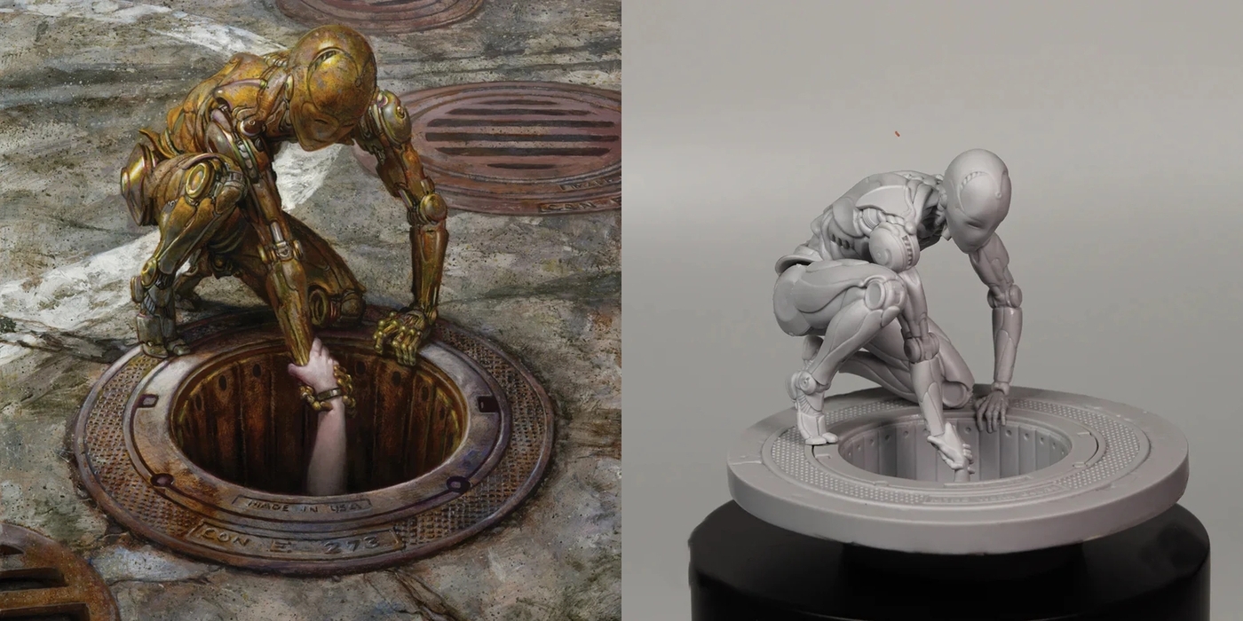 Необычный набор для покраски и сборки робота, помогающего кому-то выбраться. Масштабная модель 1/24. Ссылка на неё