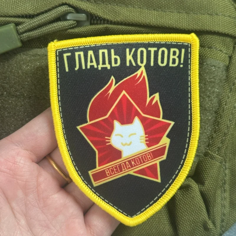 Нашивка-шеврон "Гладь котов!" с лицом счастливого котика. Размер шеврона 9х7 см. Кому интересно, ссылка на такую нашивку