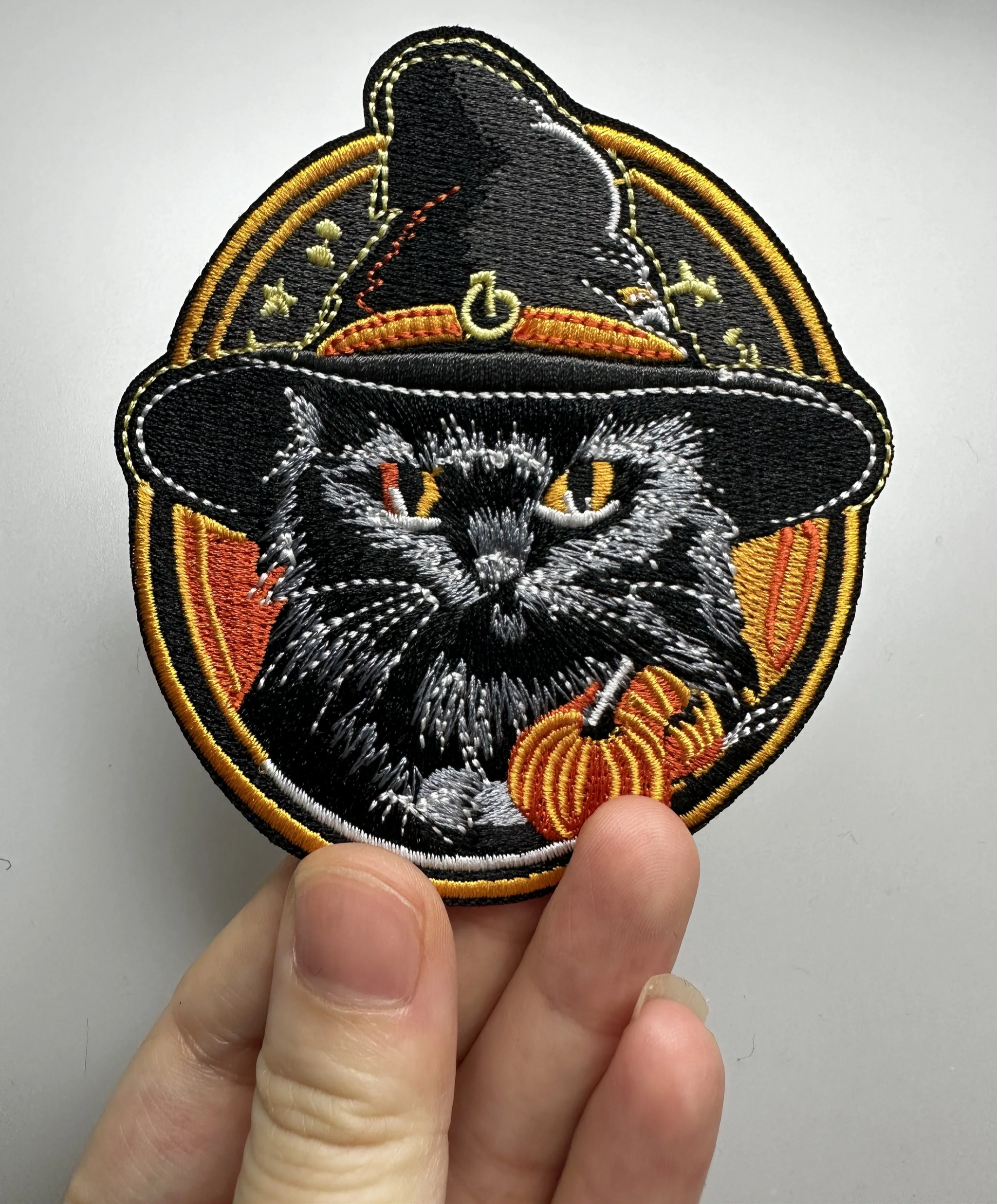 Нашивка с вышивкой кота «Котастрофа» размером 7х9 см. Кому интересно, ссылка на такую нашивку