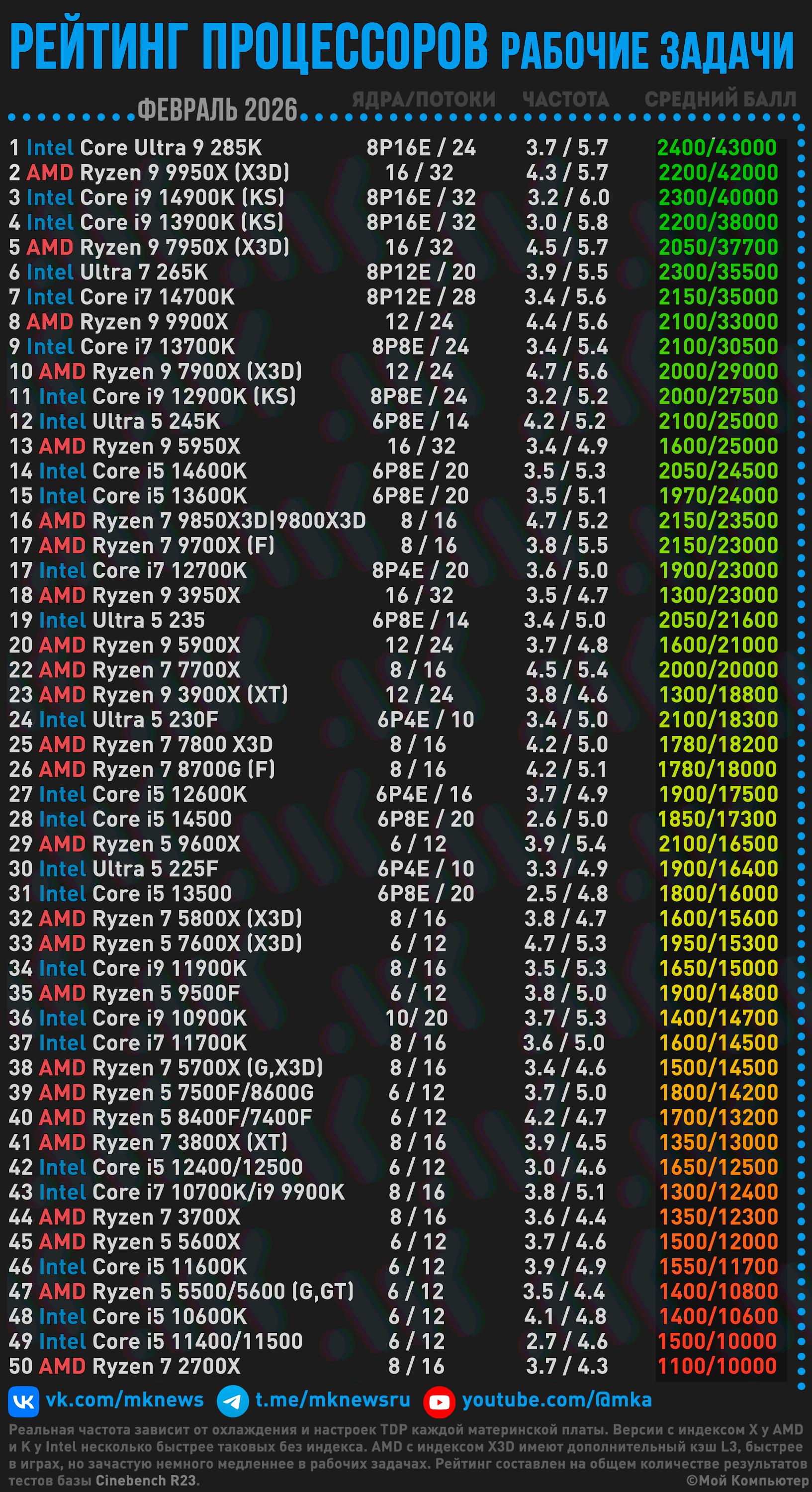 ТОП 50 ПРОЦЕССОРОВ в рабочих задачах | Февраль 2026